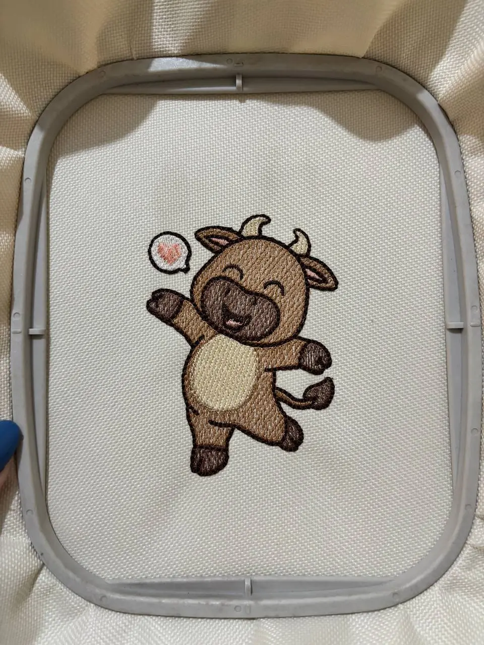 Matriz de Bordado Boi Feliz com Coração - Pontos Leves