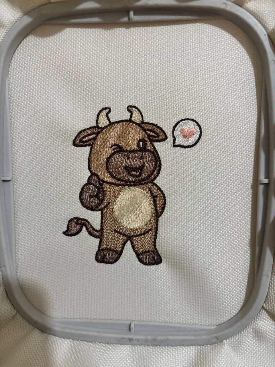 Matriz de Bordado Boi fazendo Joia (com Coração) - Pontos Leves