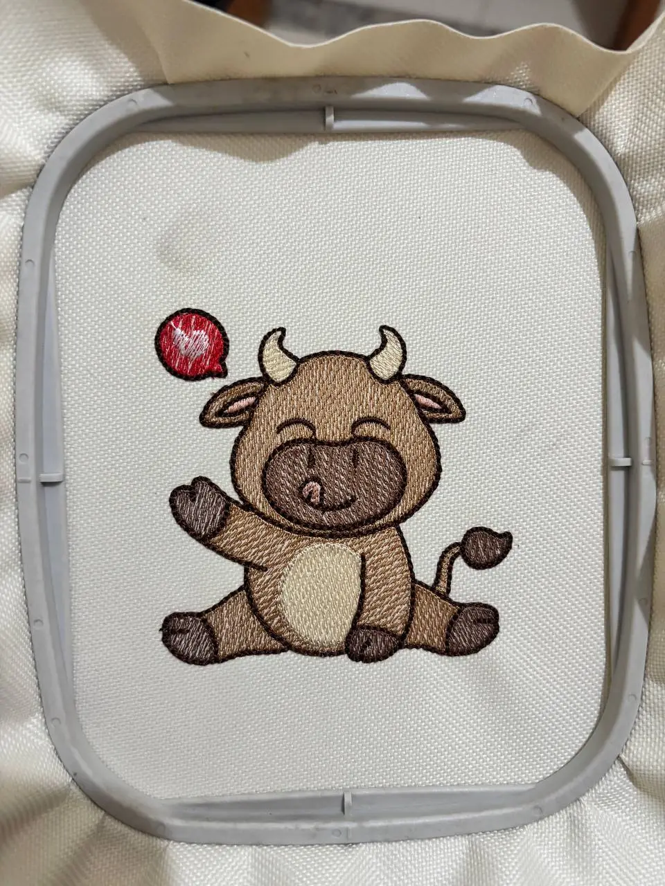 Matriz de Bordado Boi Mostrando a Língua (com Coração) - Pontos Leves