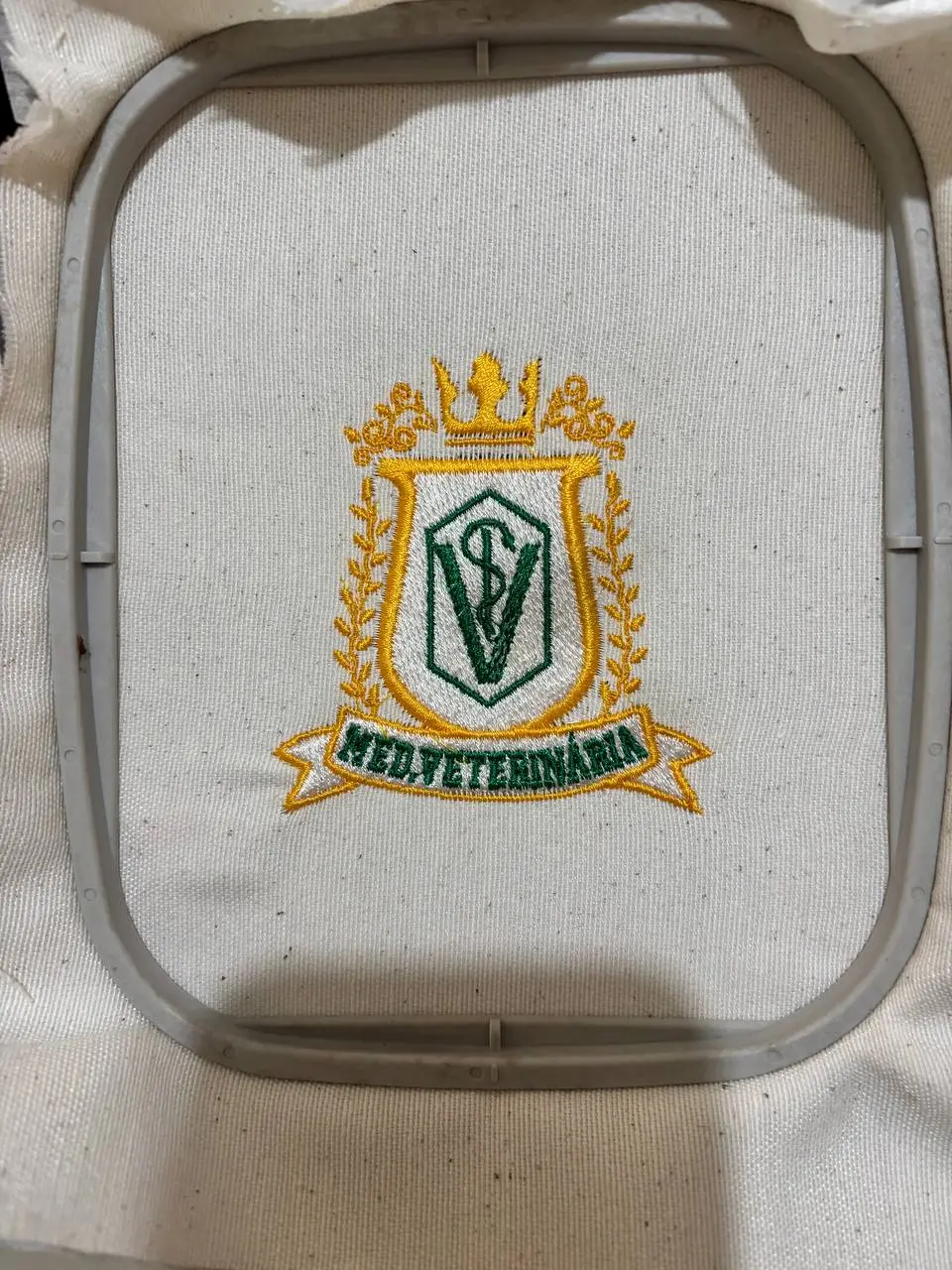 Matriz de Bordado Curso de Medicina Veterinária com Escudo, Faixa e Adornos - Ponto Tradicional