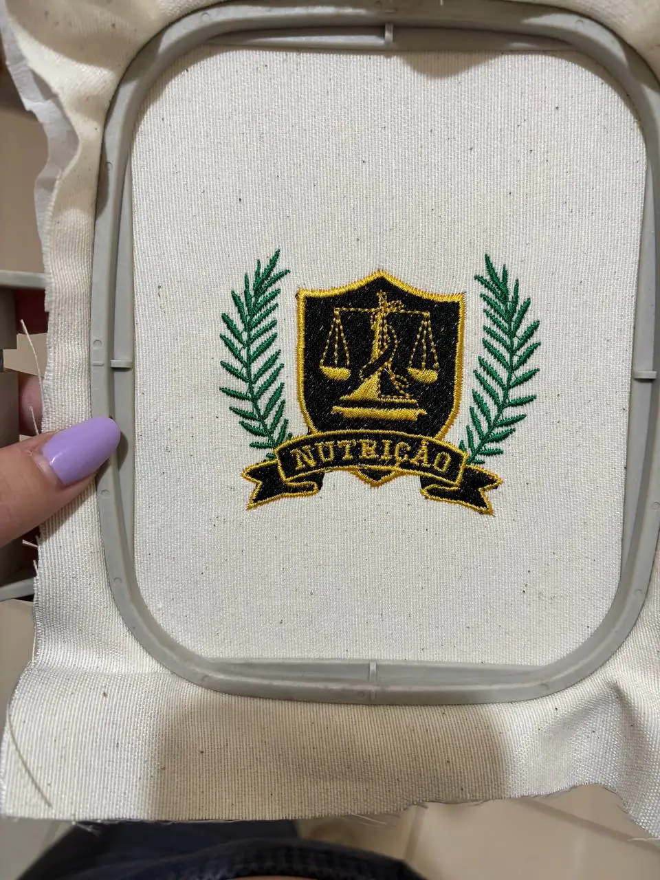 Matriz de Bordado Curso Nutrição com Escudo, Faixa e Ramos - Ponto Tradicional