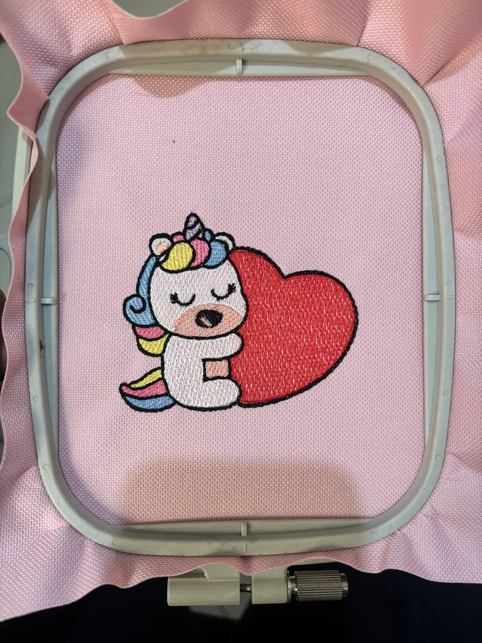 Matriz de Bordado Unicórnio Abraçando Coração - Ponto Leve