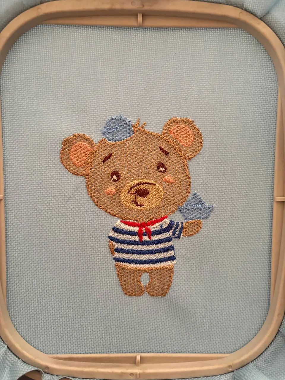 Matriz de Bordado Urso Marinheiro com Barquinho - Ponto Leve
